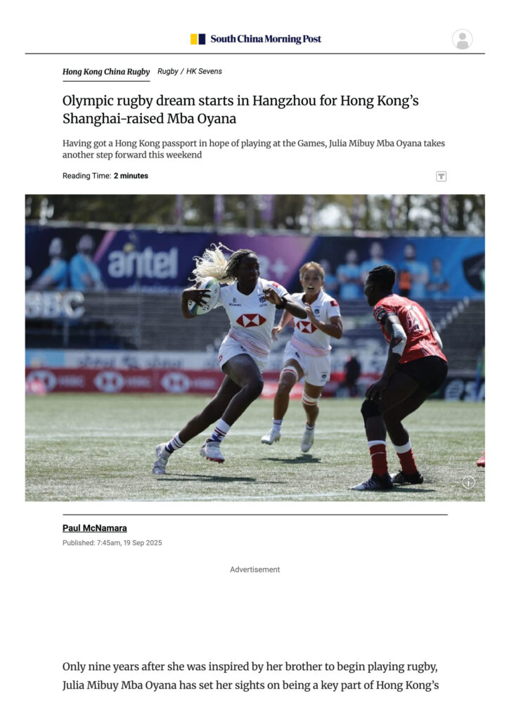 [YHKCC Alumnus Julia Mibuy Mba Oyana] Olympic rugby dream starts in Hangzhou for Hong Kong’s Shanghai-raised Mba Oyana (by SCMP) 19 Sep 2025 Share Button Share Button Share Button For the full article: click HERE Back Button Back to Listing